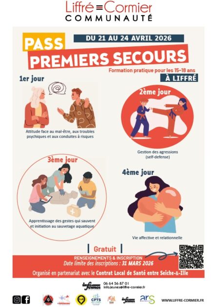 Du 21 au 24 avril 2026, le Pass Premier Secours s’installe sur le territoire de Liffré-Cormier Communauté pour proposer à des jeunes de 15 à 18 ans une formation complète et concrète afin qu’ils apprennent à réagir face à des situations du quotidien parfois complexes.
