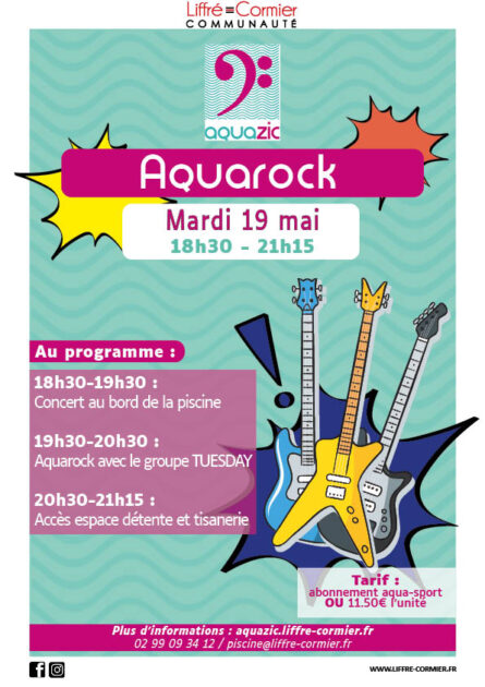 🎸💦Venez plongez dans une soirée rock organisée par l’Aquazic ! Au programme : un concert au bord de la piscine, une session aquarock avec le groupe TUESDAY, le tout entre musique et éclaboussures !