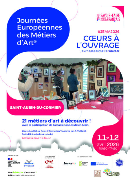 Les Journées Européennes des Métiers d’Art reviennent pour une 2ᵉ édition les 11 & 12 avril 2026🎉. Pendant tout le week-end, plongez au cœur de la création artisanale : 🧵 textile & broderie,🪵 bois & mobilier,🔥 verre & vitrail,🏺 céramique,💍 bijouterie,📸 photographie… et bien d’autres savoir-faire à découvrir !